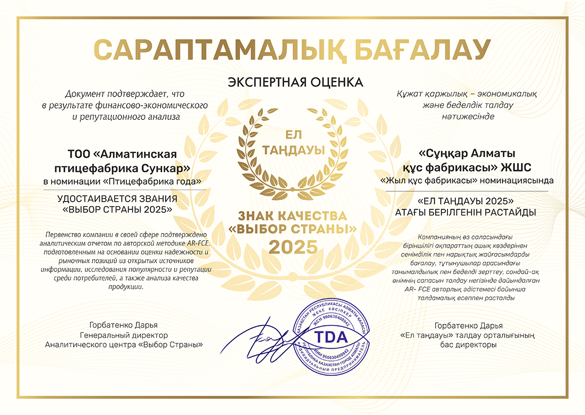 За все время своего существования ТОО «Алматинская птицефабрика Сункар» неоднократно становилась лауреатом и призером большого количества наград и премий, как на территории Республики Казахстан так и за рубежом.